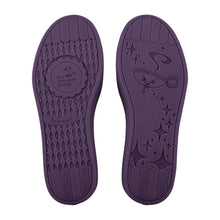- Printed fabric upper featuring purple braids and doll faces, accented with delicate lace laces