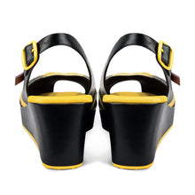 - Printed fabric upper and wedge. Fabric inner.