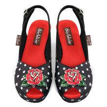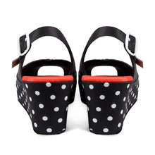 - Printed plastic upper. Printed fabric sides and wedge. Fabric inner.