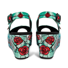 - Printed fabric upper and wedge. Fabric inner.