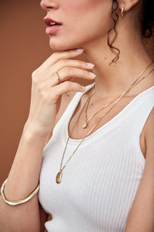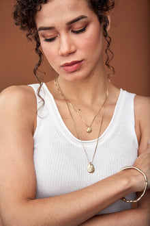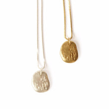 Hand carved and lost wax cast in either brass or sterling silver. Hung from a coordinating 14k gold fill or sterling silver box chain.