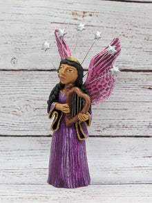 Christmas Decorations, Angel with Harp, Christmas Angel Home Decor, Handmade Angel Art de Oaxaca Mexico