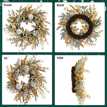 【Christmas Decorations Wreaths】The Christmas wreath handcrafted with Christmas Balls, Pine Cones, Golden Twigs, Pine Needles and Silver Berries on a natural branches wreath, Falling Snow Pine Needle give the wreath an extra wintry touch. Our artificial branches look ultra-realistic and life like. Our wreath is as charming as the real thing, natural lifelike appeal.