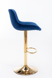 Chrome Footrest & Base Swivel Height-Adjustable Velvet Golden-Leg Bar Stool
