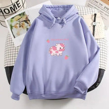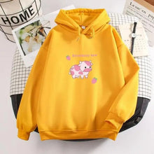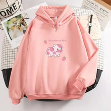 - UNIQUE DESIGN- Classic but funny hoodie women's sweatshirt, designed with super cute strawberries and cows. With hoods and pockets, black, pink, apricot, green long-sleeved hooded pullover sweatshirt, casual loose fit, fashion and cool print hoodies jumper, baggy casual style. The women's autumn winter hoodie is suitable for all people.