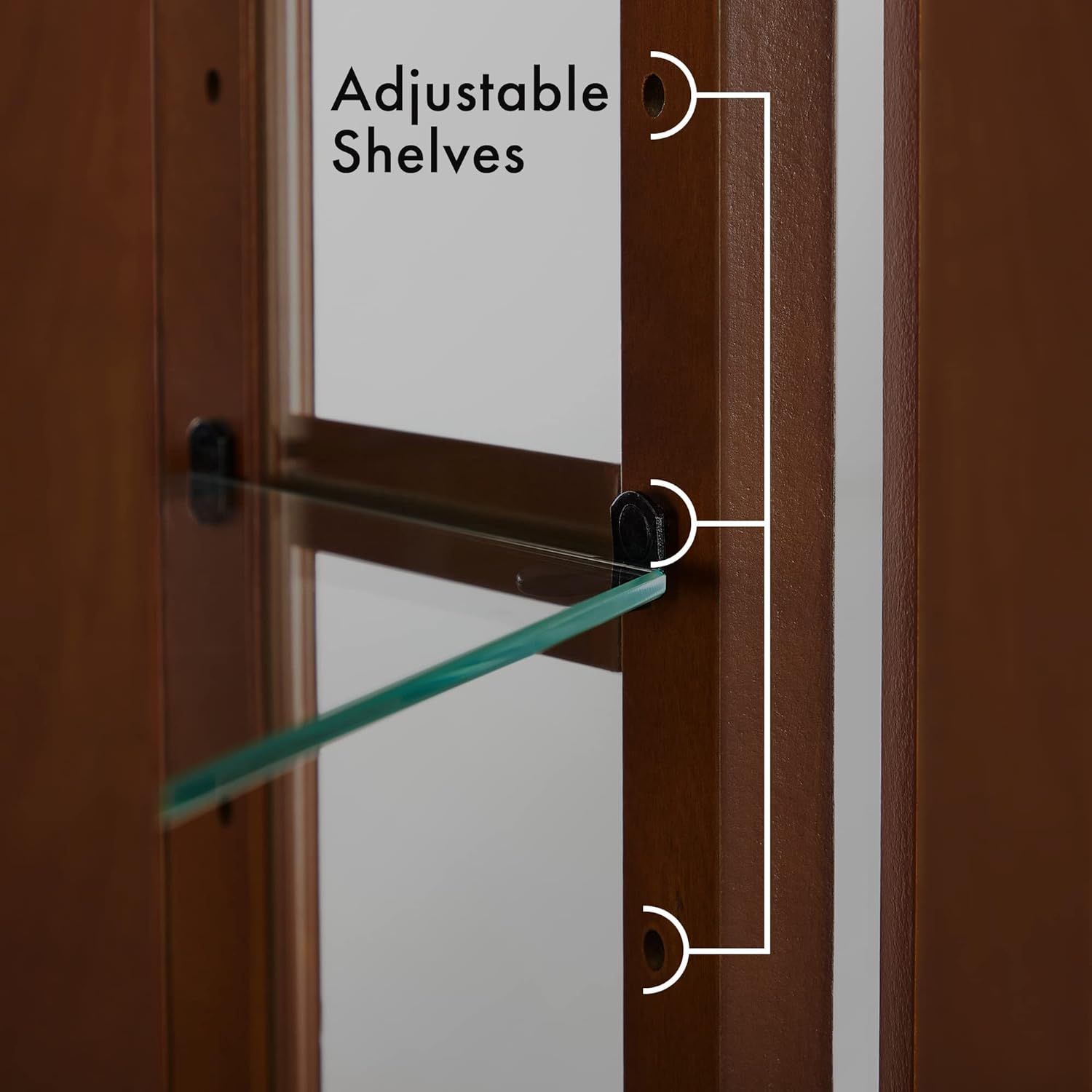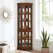 Adjustable Shelves: Corner curio cabinet has 6 shelves, 2 are fixed and 4 tempered glass shelves are adjustable. The glass shelves can also be removed if you would like to display taller items. Each shelf can hold up to 25 lbs.