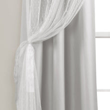 Frame the windows of your cottagecore home with these airy layered curtain panels. The textured sheer panel provides a soft design over the solid window treatment. Use the tie backs to style your Cottage Polka Dot Sheer Window Curtain Panel Set in various ways.
