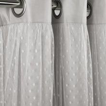 The Cottage Polka Dot Sheer Window Curtain Panel Set is sold by the pair. Each panel measures 38 inches wide and 84 inches long. With multiple colors to choose from, you are sure to find the perfect match for your space.
