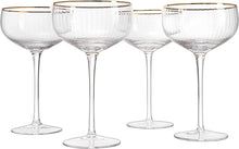 - Add a special touch to your celebration with this set of 4 gold rimmed champagne coupe glasses. The champagne coupe is widely considered to be the most romantic of drinking vessels. So you and your friends are celebrating the special event of a life time. Make it extra special by adding these 4 vintage gold rimmed champagne coupe glasses to the mix! Whether you're sharing a bottle of champagne, wine or cocktails, these classy glasses are sure to impress your guests.