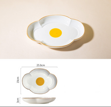 Creative Sun Egg Ceramic Bowl and Dish Set Cute Rice Bowl, Plate, Handle, Plate, Tableware, Home Breakfast Soup Plate