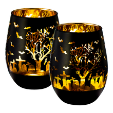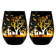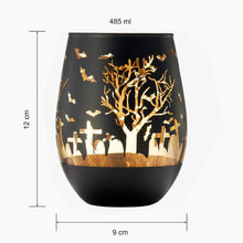 Crystal Halloween Stemless Wine Glass - Set of 2 - Themed Vibrant Black & Gold Etched Spooky Graveyard Pattern Frosted Glass, Perfect for Themed Gothic Parties Trick Or Treat Gift For Him Her (16 OZ)
