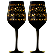 Crystal Halloween Stemmed Wine Glasses - Set of 2 - Pumpkin Themed Vibrant Black & Gold Spooky Ghost Pattern Frosted Glass, Perfect for Themed Gothic Parties Trick Or Treat Gifts for Him Her (14 OZ)