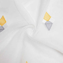 Decorate with style and sophistication with these luxury sheer curtains panels with yellow and gray diamond shape embroidery on pure white sheer material.