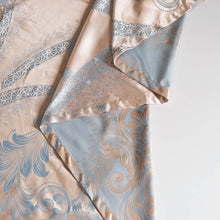 Decorate your window with style and sophistication with these luxury semi-blackout Jacquard fabric curtain panels featuring beige background and blue geometric shapes.