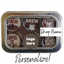 Minimum order of 12. Already love one of our magnet sets? We can customize ONE single magnet (with your logo?) of any 6 pack set. We'll swap out your ONE custom magnet with one of the 6 in a set and then rebrand the tin label with your company making an easy and affordable way to customize. Wineries, pet boutiques, outdoor shops, and more love this option