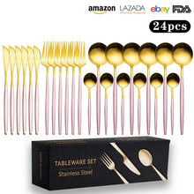 Cutlery Set Stainless Steel Knife Fork Set 24-Piece Tableware Set Golden Steak Knife Fork Spoon 6-Person Set