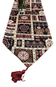 DaDalogy Bedding Elegant Woven Mughal Floral Tapestry Table Runner, Dark Noir Botanical Vintage Fleur (18197)