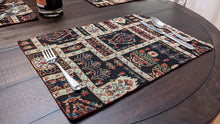 DaDalogy Bedding Set of 4-Pieces Dark Noir Mughal Floral Botanical Vintage Fleur Tapestry Placemats 13” x 19” (18197)