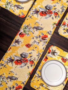 DaDalogy Bedding Sunshine Yellow Floral Vintage Hummingbirds Garden Table Runner (925)