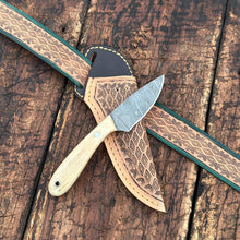 Damascus Hunting Skinner Knife, 8.0" Overall, Damascus Steel Drop Point Blade, Bone Handle, Hand Forged Fixed Blade, Full Tang, Hand Stitched Leather Sheath, Pro Knife Sharpening & PersonalizedSpecifications:Material: Hand forged...