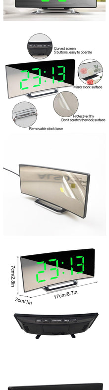 - LARGE DIGITS AND ADJUSTABLE BRIGHTNESS- This curved screen digital clock with 5 inch large digits is easy to read in the dark, even when you are not quite awake or without your glasses. With 6 adjustable levels, you can dial down it to a level that is readable in the daytime but unobtrusive at night.