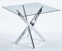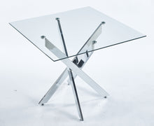 Dining Table with cross metal leg and tempered glass,Modern Space Saving Kitchen Table for Living Room,chrome legsSquare table,90x90x75cm