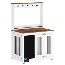 Dog crate,Graffiti dog cage, kennel with double doors, crate interior furniture, heavy wooden dog cage, large dog, white