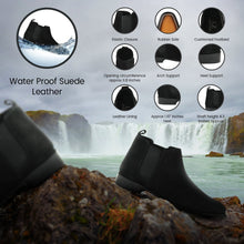 Made up of high quality GENUINE SUEDE LEATHER UPPER and LINING that wraps your feet with STYLE and keeps you COMFORTABLE throughout the day. Great WATERPROOF Suede Leather Material. RUBBER...