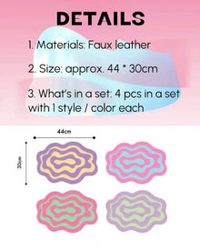 Take inspiration from the natural beauty of ripples and infused with dopamine colours, these cute whimsical placemats would bring the extra fun to the table. Not only are they visually stunning, they are also practical for everyday use. Made from faux leather, they are easy to clean and super durable to be loved for years to come. Each set includes four placemats, measuring 44 x 30 cm, making the ideal for both small and large gatherings.