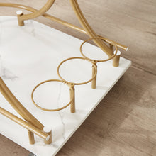 • With an elegant golden frame and faux marble-patterned wood panels, accompanied by gracefully curved handles, this serving cart offers an excellent opportunity to showcase your personal style while adding sophistication to your bar area, dining room, or kitchen.