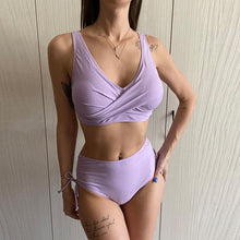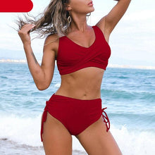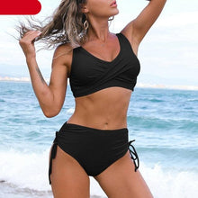 Elegant High Waist Bikini Set Push Up Swimwear Women Swimsuits New Black Bathing Suit Twist Women's High Waist Bikini Twist Front Tie Back 2 Piece Lace Up Summer Swimsuits