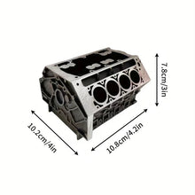 Engine Block Desk Organizer: Modern art for desktop/bookshelf. Holds business cards, a creative office accessory.