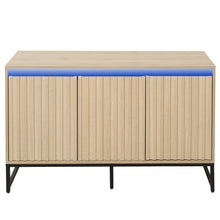 SpecificationProduct InformationProduct Name:Carved 3 Door Sideboard with LED, Buffet Cabinet Storage Cabinet Modern Coffee Bar Cabinet With Adjustable Shelf For Living room,Diningroom,KitchenMain Color:NaturalMain Material:Particle BoardProduct Style:ModernProduct DimensionsAssembled Length (in.):47.25Assembled Width...