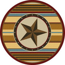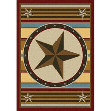 The Estancia Star Rug is comprised of a gorgeous array of rich earth tones and handsome Western styling that is sure to heat up your rustic ranch decor. A stylish hacienda star is beautifully showcased in the center while a striped background of gold, chocolate brown, periwinkle, rust, and tan is artistically displayed. Our Wild West inspired rug is made of premium materials that surpasses commercial-grade ratings and is designed to last for generations of wear. Made in the USA.