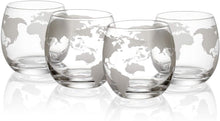 Etched World Decanter Car Whiskey Globe With 4 World Map Glasses