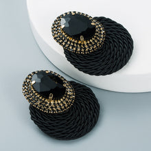 European And American Style Colored Diamond Series Personality Exaggerated Oval Glass Diamond Earrings Handmade Line Braided Earrings