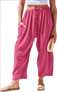European and American women's elastic waisted pleated high waisted wide leg loose Haren cotton linen pants