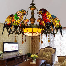 European Creative Chandelier Retro Art Stained Glass Parrot Bar Restaurant Living Room Bird Lamp Glass Tiffany Chandelier