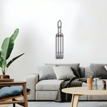 The art itself is laser cut from 2 mm thickness steel. It is textured, dyed, and powder coated with a matte finish. Our products include elevation screws that lift the art piece 1 cm - 0.4" inches away from the wall and provide a 3D stylistic look!