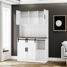 Farmhouse Bar Cabinet with Sliding Barn Door, Large Kitchen BuffetRustic Coffee Bar Sideboard Table,White