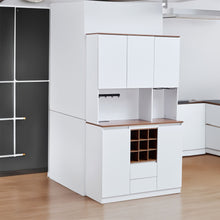 LARGE & FLEXIBLE STORAGE:This kitchen hutch composed of a buffet and upper hutch. The upper hutchadjustable shelves and flexible stemware slots for storing different height items. The bottom buffet have shelves, wine rack and drawer, offering ample and flexible storage for your dinning essentials, including dishes, glassware, and liquor.