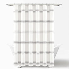 Measuring 72 inches long and 72 inches wide, the Farmhouse Stripe Shower Curtain will fit nearly any bathtub. It hangs easily with any standard shower curtain hooks or rings.