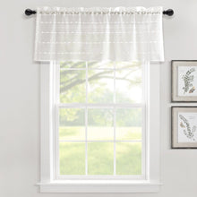 We are proud to offer this Farmhouse Textured Sheer Valance in a large selection of neutral colors, making it easy to match any space. Each?ávalance measures?á52 inches wide?áand 18 inches in length, plus a 2-inch header above the rod pocket.