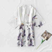 Fashion Blue Floral Bird Print Stylish Bathrobes Modern Comfortable Design Silk Soft Sleepwear For Women
