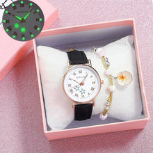 Fashion Girls Quartz Watches Bracelet Set Luminous Dial Watch Women Casual Leather Female Wrist Watch Leather Band Thin Minimalist Casual Simple Dress Quartz Analog Watch