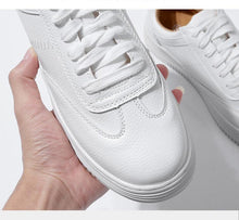 Fashion White Split Leather Women Sneakers White Lace Up Women Casual Shoe Luxury Leather Womens Sneakers Spring Casual Women Fashion Flat Sneakers