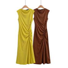Fashionable and Sexy Style Women's Two-color Knitted Pleated Long Dress