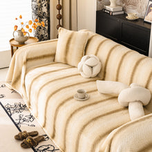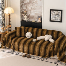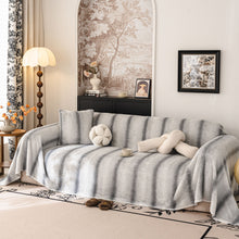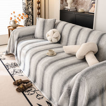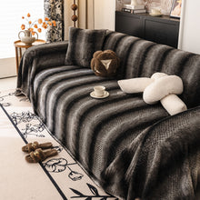 This Slipcover KAS™ plush faux rabbit fur slipcover blends a 3D, high-low "cobblestone" texture with a modern, gradient stripe print. The high-pile, premium material is exceptionally soft, fuzzy, and plush, creating a rich, warm, and luxurious feel. It is designed as a versatile sofa throw cover, reinforced with a durable woven backing for added structure. This washable furniture protector is ideal for any sofa, including a sectional, providing a protective layer while serving as a sophisticated decorative textile.