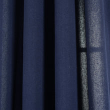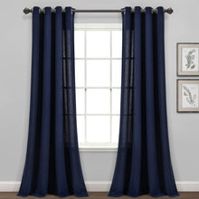 The Faux Linen Grommet Window Curtain Panel Set is sold by the pair and each individual panel measures 84 inches long and 52 inches wide, giving you 104 total inches of total width per set. This set currently available in five color options: dark linen, navy, blue, light linen, and light gray.