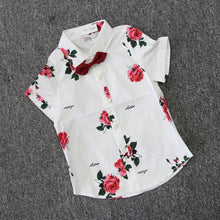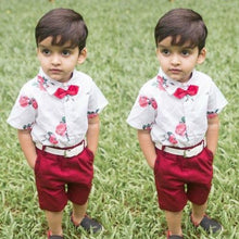 Floral Boy Gentleman Outfits Suit Short Sleeve Toddler Bow Tie Shirt Tops +Red Shorts Summer Set For Boy Kids Form 1-5 Years